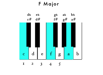 4. When going up, black key chords are sharps (#) and when going down they are flats (b).
