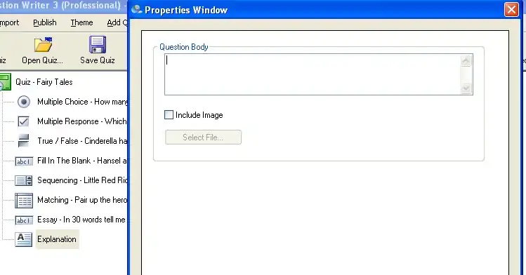 The Explanation question is not really a question type. You can use it to add text and/or an image to a page in the quiz, without needing to have an interactive element of score. This is useful if you want to: