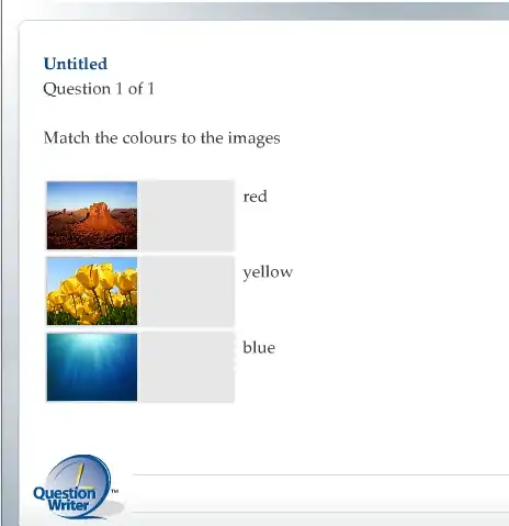 Here is a step by step description of how to add images to a matching question. First add your question, it must be either a Partial Credit, Matching, Sequencing or Plugin question types but for this example we are using a matching question. In the question properties you can type in the Question, eg “Match the colours to the images?” You do not need to add any text into the choices or matches fields. The next step is to add options to the Question. With your mouse over the question, right click and select Add and then, from the drop down list that appears, select Option ![]() You need to add an option for each possible answer option you want to give, ie the choice and it’s respective match. After you have added your first option you can add your image to that option. So with your mouse on the option, right click and select Add and then Image ![]() You can then add the option to match with that image, eg a text option, though it could be another image or a sound. ![]() When you have added all your choices and matches you can preview your question. ![]()