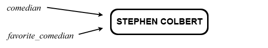 Now, we have two variables that we can use to refer to the same String object — comedian and favorite_comedian. Since they both refer to the same object, if the object changes (as we'll see below), the change will show up when using either variable.