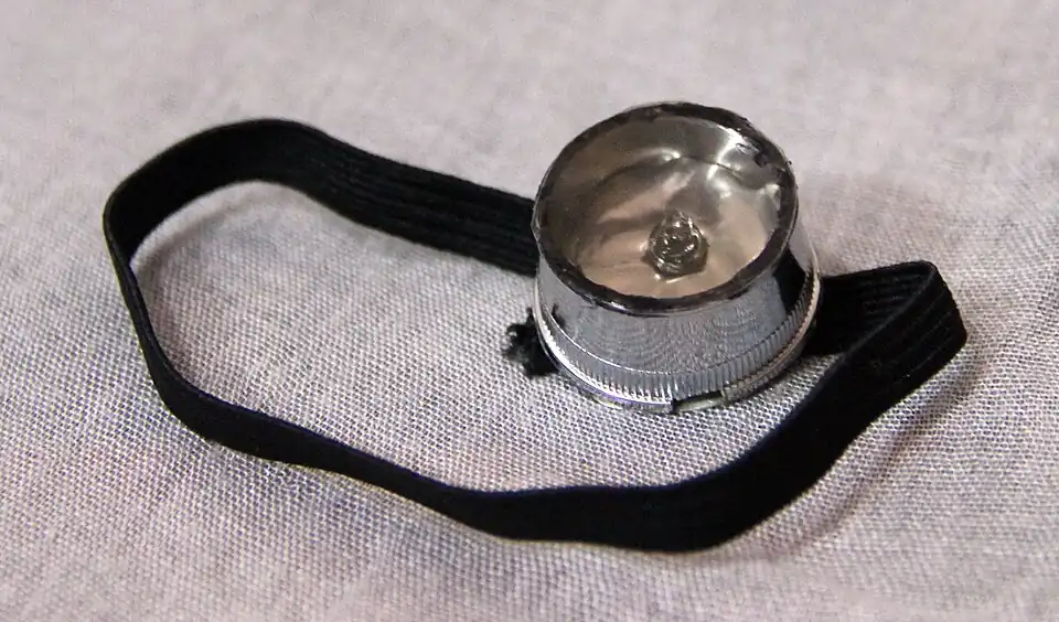 You need to be able to see what you are working on. If permanent home lighting or daylight is not enough, there are portable options like plug-in lamps and work lights. Work lights can be mounted on stands or clamp onto an available surface. Battery options include flashlights, and headlamps which leave the hands free (Figure 5.5-4). Inspection mirrors are small adjustable ones on a handle to see in hard-to-reach places. Some have telescoping handles and built-in lights.