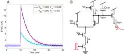 - output stage: The output is provided by synapses, i.e. the points where a neuron contacts the next neuron down the line, most often by the emission of neurotransmitters (i.e. chemicals that affect other neurons) which then provide an input to the next neuron.