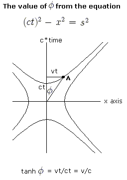 We know this world line is an hyperbola, with asymptotes xct. Looking at the diagram show another property.