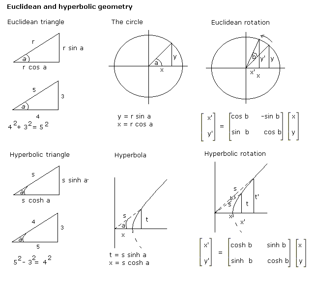 Written this way they look much like the equations describing a rotation in three dimensions. In fact, once we allow for the different Pythagorean theorem, they are exactly like the equations for rotation.