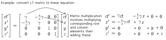 The coefficients of the Lorentz transformation can be represented in matrix format: