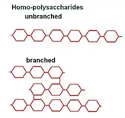 Homo-polysaccharides can be branched or unbranched as long as they all have the same monosaccharide unit