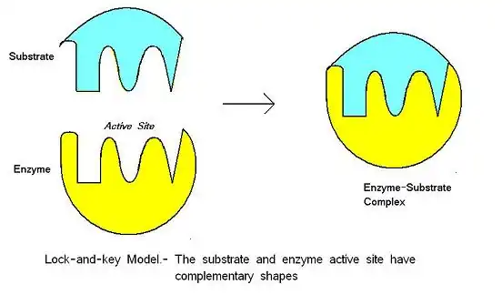 The lock-and-key model was proposed by Emil Fischer in 1890. This model presumes that there is a perfect fit between the substrate and the active site—the two molecules are complementary in shape. Lock-and-key is the model such that active site of enzyme is good fit for substrate that does not require change of structure of enzyme after enzyme binds substrate