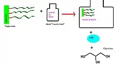 An example of making soaps is called Saponification of fats and oils which is the most common method of soap making process. 1) Heat fats and oils 2) React with liquid Alkali