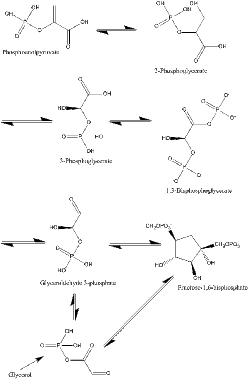 •The next steps of the reaction are essentially the same as those involved in reversed glycolysis, with the only difference being that fructose-1, 6-bisphosphatase converts fructose-1,60bisphosphate to fructose-6-phosphate. Note that this conversion is the rate limiting step of the whole process of glucogenesis.
