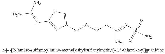 Pepcid is a drug with generic name Famotidine that is manufactured by Merck and Co. It is classified as a Histamine H2 Receptor Antagonist with chemical name 2-[4-[2-(amino-sulfamoylimino-methyl)ethylsulfanylmethyl]-1,3-thiazol-2-yl]guanidine. Famotidine is used to treat and prevent ulcers in the stomach and intestines. Famotidine is also used to treat conditions in which the stomach produces too much acid and conditions in which acid comes up into the esophagus and causes heartburn, such as gastroesophageal reflux disease (GERD). The drug is available in suspension, injection, and tablet form. 15% to 20% of PEPCID in plasma is protein bound. Administered PEPCID tablets and suspension are incompletely absorbed and its bioavailability is 40-45%. PEPCID is excreted by renal (65-70%) and metabolic (30-35%) routes with the only metabolite identified is the S-oxide. It has a half life of 2.5-3.5 hours. The drug works by inhibiting gastric secretion. This is done through competitive inhibition of histamine H2 receptors. These receptors located in the parietal cell are responsible for the secretion of HCl in the stomach. When mast cells are agitated, they release the H2 substrate which will then bind the receptor site and produce HCL. The drug competes with the H2 for the receptor site to prevent binding and thus the release of gastric acid. Some of the severe side effects associated with the drug are seizures, Arrhythmia, and diarrhea.