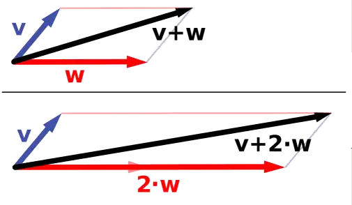 A vector space on a field is a set equipped with two binary operations: common vector addition on elements of and scalar multiplication, by elements of on elements of . These operations are subject to 8 axioms (u,v, and w are vectors in and a and b are scalars in ):