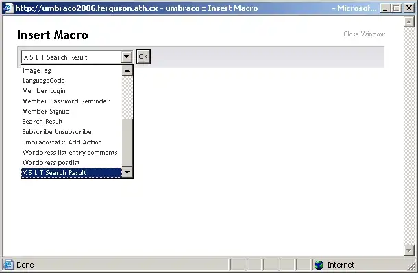 Note: if you don't see your Document type in the list of options then there are obviously issues with how you have set up the structure of Document types within Umbraco. Resolving this problem is outside of the scope of this tutorial, but is quite simple to resolve and the fine folks on the Yahoo mailing list will no doubt set you straight within minutes.