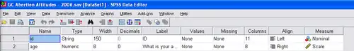 | Name | The variable's name. Older versions of SPSS were limited to 8 character names. New versions of SPSS are not, but lengthy descriptions better belong in the Label column. |