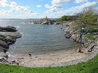 Because Finland is a big country with few people, it has many large national parks. Tourists are attracted to Finland by the capital, Helsinki, the lakes, forests and the northern area known as Lapland. Commercial Baltic cruises which visit other Baltic cities like Tallinn, Stockholm and Gdansk regularly bring tourists to Helsinki. Even though the sea freezes during the winter shipping continues as normal because of ice-breaking ships. Finland has 7 UNESCO World Heritage Sites (including those which are in other countries as well as Finland) including Suomenlinna, an island fortress in the bay in front of Helsinki. Suomenlinna is popular with tourists all-year-round and residents of Helsinki enjoy taking the short ferry to the island for picnics and the chance to escape from city life.