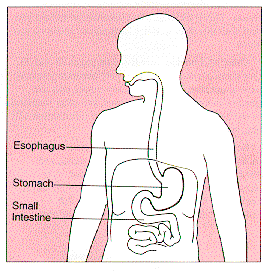 At the top of the stomach is a tube where food comes in from the esophagus. When you swallow, this tube opens so food can go in the stomach.