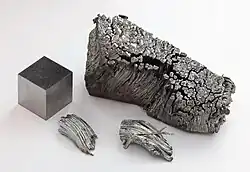 In 1794, Johan Gadolin found an ore in the Ytterby mine in Sweden, from which yttrium was extracted. In 1824, Friedrich Wöhler extracted the element yttrium from it. Yttrium is one of the rare earths (which are not that rare). It is used for magnets, fuel cells and spark plugs. Yttrium powder can build up in the lungs and damage them. Pieces of metal do not burn, but powder burns easily.
