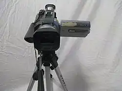 A miniDV digital video camera. Many cameras are compatible with Windows Movie Maker.
