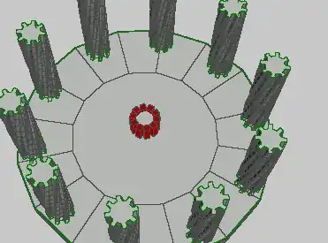 After executing the Put-On, you should see all your columns duplicated around the central cylinder.