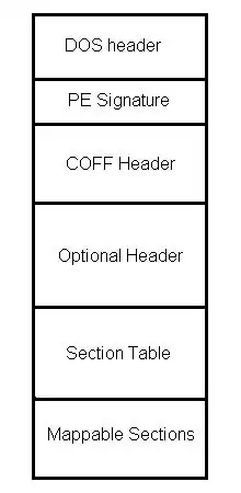 The PE portable executable file format includes a number of informational headers, and is arranged in the following format: