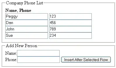 This program has a model of the existing phone list and one additional NewPerson data element at the end of the list. The new person data is linked to the two field form at the end of the table. When you hit the insert button (the trigger) it will copy the data elements from the mini-form and copy them into a new location inside the existing model. The entire list will then be updated. The exact location of where the insert occurs is determined by the index() function. The index is the number of the row you last selected.