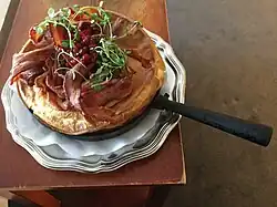 ![]() A Scanian äggakaka with fried pork, apples, and a bowl of lingonberries. | |||||||
