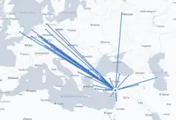| AJet | Ankara,[12] Beirut,[13] Ercan,[12] Istanbul–Sabiha Gökçen[12] Seasonal: Skopje[14] |