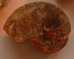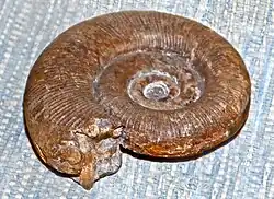 An Ammonite, member of the family Phylloceratidae inside Phylloceratida. It is based on more complete specimens than other local Ammonites.