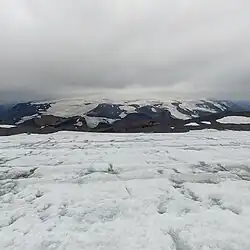 Þórisjökull or Thórisjökull (Icelandic pronunciation: [ˈθouːrɪsˌjœːkʏtl̥] , Icelandic for "Thóris's glacier") is a small glacier and volcano in western-central Iceland, to the southwest of Langjökull glacier. It has an elevation of 1,350 metres (4,430 ft). Kaldidalur lies in the foreground.