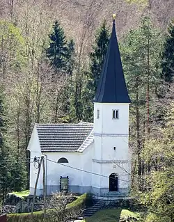 The local church is dedicated to Saint Nicholas and belongs to the Parish of Šentlambert. It dates to the 17th century.[4]