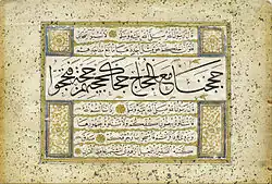 1. ^ a b c d Uğur Derman, M. Letters in Gold: Ottoman Calligraphy from the Sakıp Sabancı Collection, Istanbul, pp. 19, 96-98 (Metropolitan Museum of Art, 1998).