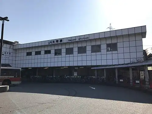 Ōmachi Station (大町駅, Ōmachi-eki) is a station operated by the West Japan Railway Company (JR West) and Hiroshima Rapid Transit. It is located in Ōmachi-higashi, Asaminami-ku, Hiroshima, Hiroshima Prefecture, Japan. The Kabe Line and the Astram Line stop at this station, though they are situated in separate station buildings. An overpass connects the two buildings together.