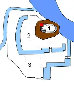 During the Meiji era (1868–1912), abandoned and left at the mercy of the elements, the castle deteriorated rapidly. After 20 years of neglect, in 1888, the main keep was on the verge of collapse and was thus demolished. Nonetheless, its two surrounding turrets (櫓, yagura), Koran and Daidokoro, were left intact. These turrets, built in the late Edo period (1603–1868), as well as the turrets named Owata and Minami Sumi were marked as Important Cultural Property in 1957 by the Agency for Cultural Affairs of the Japanese Government.[2]