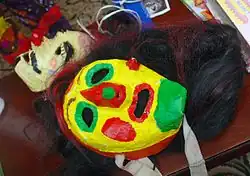 The participants of Śmiergust have dressed up as various characters: "(...)doctors, Jews, chimney sweeps, cart drivers or (...) women. At a certain point they began creating their costumes from patches of old items of women's clothing, which resulted in a colourful, motley effect".[1][5] They also wear hats decorated with crepe flowers which symbolise the coming spring, as well as hand-painted paper-mâché masks, worn to conceal the owner's identity.[1]