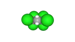 The compound can be produced quantitatively also by reacting carbon tetrachloride CCl4 and 1,1-dichloroethene Cl2C=CH2 at 80-150 °C, with a copper-based catalyst, such as copper(I) chloride or copper(II) chloride, and possibly an amine as co-catalyst.[3][8][9][10][11][12][13][14] The same process can generate higher chlorinated alkanes of the form H3C−(CH2−CCl2)nCl.[3][11]