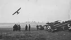 On July 14, 1928, the Escadrille was transferred from Lida to Kraków. The Escadrille often took part in air shows, where it often competed against the 122nd Fighter Escadrille. In 1930, the escadrille began to receive Avia BH-33 fighter planes, along with Wibault 70 C1 fighter planes as training aircraft.[1] In August and September 1932, the Escadrille participated in air parades celebrating Poland's victory in the Challenge International de Tourisme 1932. In 1933, the escadrille was equipped with PZL P.7a fighter planes. It participated in another air parade, celebrating Poland's victory in the Challenge International de Tourisme 1934. In 1936, the escadrille received the new PZL P.11a fighter plane. In 1938, the escadrille received the PZL P.11c.
