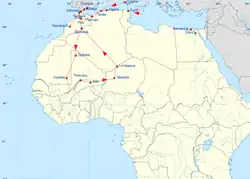 Map of Ibn Battuta's route into West Africa