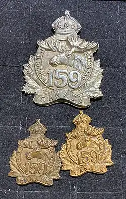 The 159th (1st Algonquins) Battalion, CEF was a unit in the Canadian Expeditionary Force during the First World War. Based in Haileybury, Ontario, the unit began recruiting in late 1915 in the districts of Nipissing and Sudbury. After sailing to England in November 1916, the battalion was absorbed into the 8th Reserve Battalion on January 20, 1917. The 159th (1st Algonquins) Battalion, CEF had one Officer Commanding: Lieut-Col. Ernest Frederick Armstrong.[1]