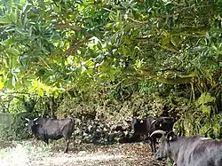 There are many huge boulders on the coasts of the Yaeyema and Miyako islands that are believed to have been deposited by tsunamis. There was a legend that an islet disappeared, but this has never been verified. This set of rocks are called the Ishigaki East Coast Tsunami Rocks.[8] Among them, Yasura-ufukane, Amatariya–Suuari and Taka-koru sishi have been dragged by the 1771 Meiwa tsunami.[9]