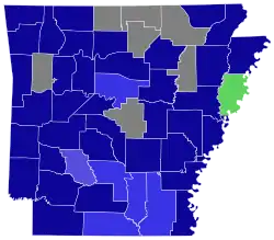 - ^ a b c d e f g Franklin, Fulton, Izard, Jackson, Lawrence, Marion and Pulaski counties did not report results.