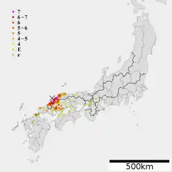 1. ^ デジタル大辞泉プラス,世界大百科事典内言及. "浜田地震とは". コトバンク (in Japanese). Retrieved 2021-05-02.