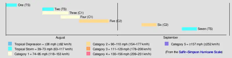 - ^ A major hurricane is a storm that ranks as Category 3 or higher on the Saffir–Simpson hurricane wind scale.[1]