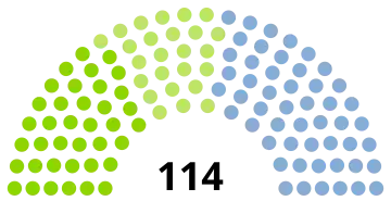 Last election 63.41%, 30 seats 36.59%, 84 seats