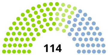 Last election 50.84%, 63 seats 49.16%, 35 seats 16 seats with H