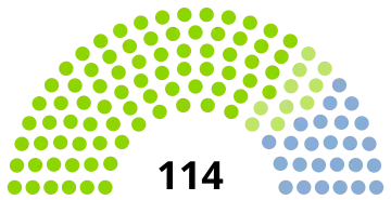 Last election 50.36%, 59 seats 49.33%, 40 seats 15 seats with H