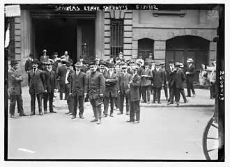 ![]() New York City waiters' strike outside of Sherry's restaurant in Manhattan, 1912. | |||