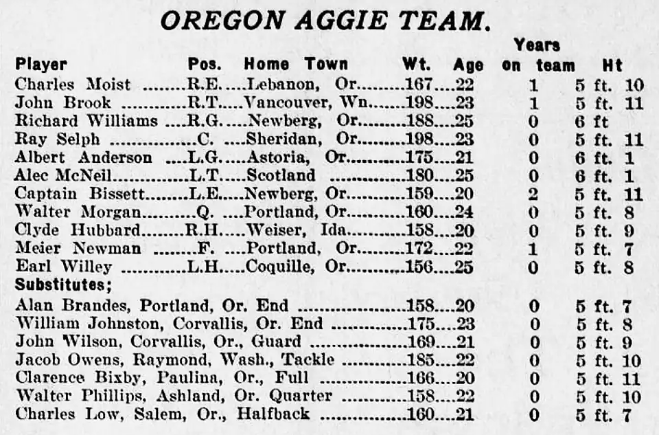 2. ^ "OAC crushes Idaho eleven". Spokesman-Review. (Spokane, Washington). October 8, 1916. p. 1, part 3.