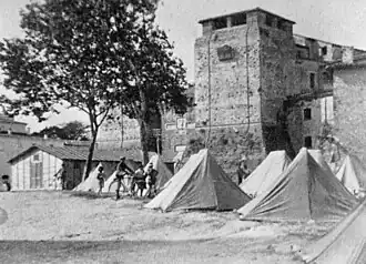 ![]() Tents in front of Castel Sismondo after an earthquake | |