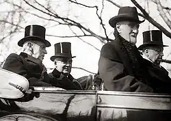 Warren G. Harding inauguration, March 4, 1921. Harding at right in back seat; Woodrow Wilson at left.