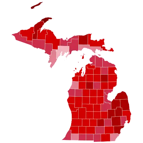 Democrat Davis gathered only 13.13 percent of the vote and did not pass one-third in any of Michigan's eighty-three counties, whilst La Follette, who carried his neighbouring home state of Wisconsin and received over thirty percent in all other states of the Upper Midwest, received limited support in Michigan because it was less German[19] and more Yankee and Polish than any other Midwestern state.[20] La Follette's best performance was in the heavily Finnish and anti-clerical Upper Peninsula,[21] where he received forty-four percent in Delta County and over twenty percent in seven other counties in the western Upper Peninsula. However, in the more populous Lower Peninsula, La Follette exceeded his national vote share of 16.62 percent only in four of sixty-eight counties,[b] and consequently the Wisconsin Senator won only 10.51 percent of Michigan's total vote, making it his third-weakest state in the Midwest after heavily Southern-leaning Indiana and Missouri. As in 1920, the Republican presidential landslide was accompanied by a clean sweep of every seat in both houses of the State legislature.