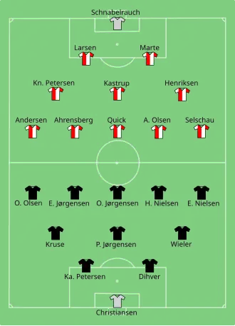 28. ^ a b "Sport : Sport i smaa Bidder". B.T. (in Danish). 15 June 1927. p. 15. "Fremad"s Amager Hold i Oprykningskampen imorgen Aften mod H. B. bliver fra Maalmand til venstre wing: Schnabelrauch: Frode Marte og Otto Larsen: Vald. Henriksen, K. Kastrup og Knud Petersen: H. Selchau, Alf Olsen, E. Quick, H. Ahrensberg og Bernhard Andersen.